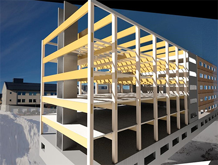 Vi jobbar i så stor utsträckning som möjligt med verkliga projekt, där studenterna senast projekterat en femvåningsbyggnad för kontor och studentbostäder som ska stå på Campus i Östersund. Tekla Structures används för att underlätta för studenterna när de behöver skapa sig en överblick av ett projekt samt för att se hur detaljkonstruktioner hänger samman, säger Fredrik Hermansson, programansvarig för byggingenjörsutbildningen på Mittuniversitetet i Östersund.