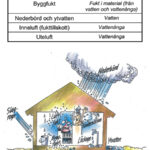 Här visas först en figur (som är något av en personlig favorit) och som visar att en byggnad verkligen är ”omringad” av fukt som kommer uppifrån, från sidan, nerifrån, och dessutom inifrån! Figuren har kopierats under förra årtusendet från en skrift, tror att den hette ”Gullfiber Isolerteori”, men här kanske någon läsare kan hjälpa till så att vi får en riktig referens! I tabellen finns en sammanställning av de olika fuktkällorna, följt av några kommentarer: Markfukt. Vatten i mark är … [Läs mer...] om … och svarar 2/26