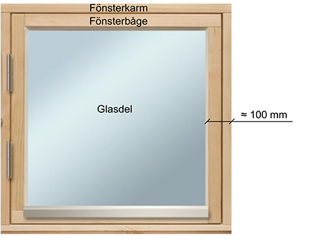 Ett fönster i ett litet exempel har karmyttermåtten 1 x 1 m. (I praktiken brukar karmyttermåtten vara ca 2 cm mindre än hela dm, så det här fönstret har då t ex måtten 0,98 x 0,98 m.)