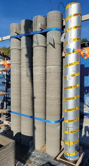 Självkompakterande betong (SKB) och 3D-utskriven betong är två spännande tekniker med stor potential att öka produktiviteten inom byggsektorn. Resultatet från ett KTH-projekt visar att samverkanspelare bestående av en kvarsittande 3D-utskriven betongform med en igjuten SKB-kärna utvecklar lika hög bärförmåga som motsvarande homogena betongpelare. I försöken ingick även provning av frostbeständighet, kloridmigration och karbonatisering med litet blandade resultat.